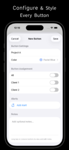 – Create custom buttons with names, colors, and optional alerts