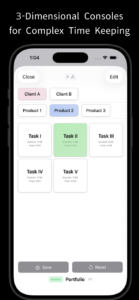 – 3-Dimensional Consoles: Track time for group-subject-task combinations (e.g., clients, projects, and activities)